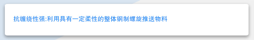 WLS250無軸螺旋輸送機與傳統有軸螺旋輸送機相比,由于采用了無中心軸設計,利用具有一定柔性的整體鋼制螺旋推送物料,因而具有以下突出優點:抗纏繞性強。